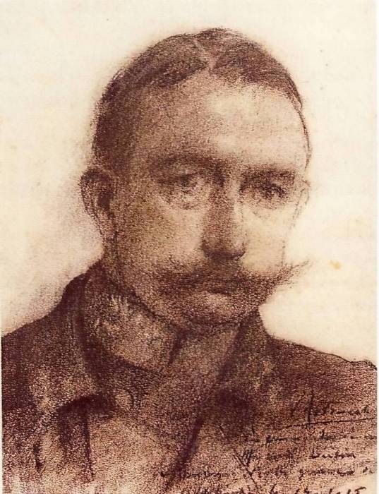 Un dessin au crayon, que nous reproduisons ci-dessous témoigne déjà en 1915 de ce que les temps dur de la guerre, comme beaucoup d’autres, l’avaient marqué physiquement.